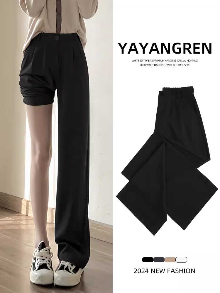 Black Suit Pants for Women, Autumn Professional Formal Wear, Wide-Leg Commuting High-Waisted Drape Straight-Leg Work Trousers