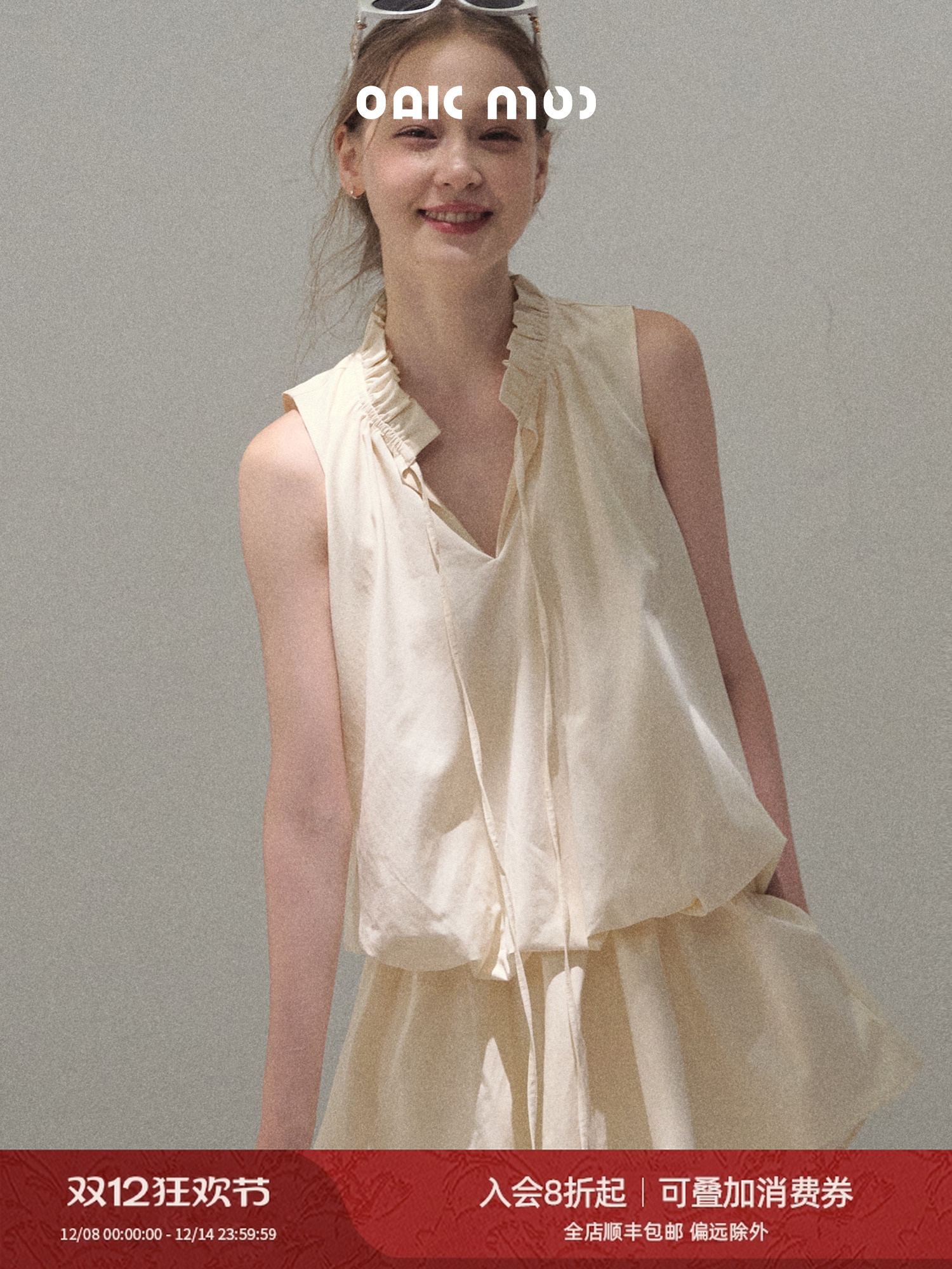 Oakmoo Basic * Lyocell Cotton Lace-Up Loose Silhouette Design Flower Bud Jellyfish Dress