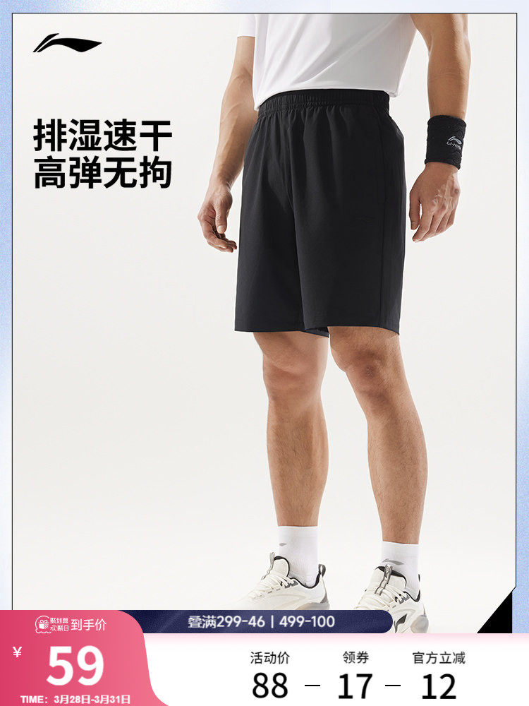 Li-Ning Men's Summer New Sports Shorts for Fitness and Running, Moisture-Wicking, Quick-Drying, Reflective Woven Sports Shorts