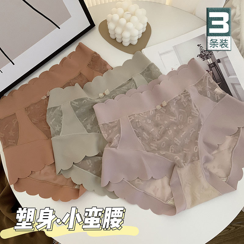High-Waisted Tummy Control Panties for Women, Lace Sexy Mesh Letter Jacquard Antibacterial Crotch High-Elastic Triangle Shorts, Thin Summer Style