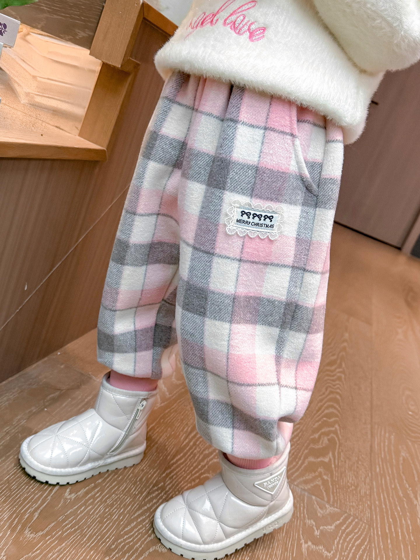 Girls' Fleece-Lined Plaid Pants, Autumn and Winter Style, Stylish and Warm Long Pants for Baby Girls, Winter Clothing, Children's Fleece-Lined Casual Pants