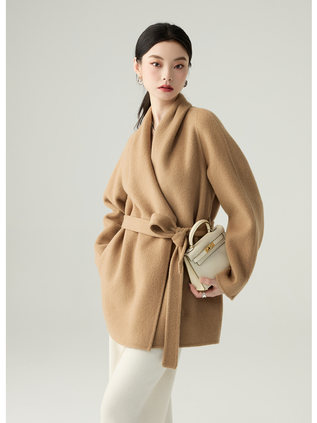 Pinkwin Camel Wool Coat for Women, Short Style, 2025 Autumn and Winter New Trendy, Stylish, Minimalist, Gentle Wool Jacket