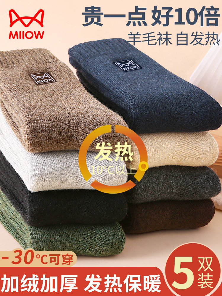 Catman Wool Thick Socks Men's Mid-Calf Socks Autumn and Winter Long Socks Winter Thickened Northeast Warm Cashmere Terry Socks