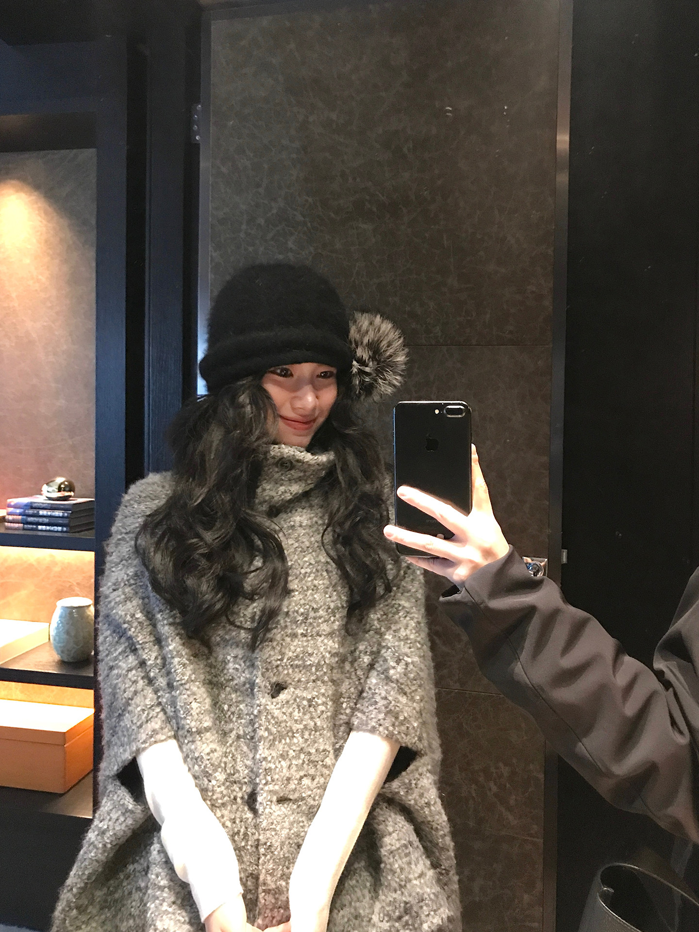 Daqianwithu Study Abroad Time, Looped Wool Gray Turtleneck Cape Shawl Coat Cardigan Woolen Coat