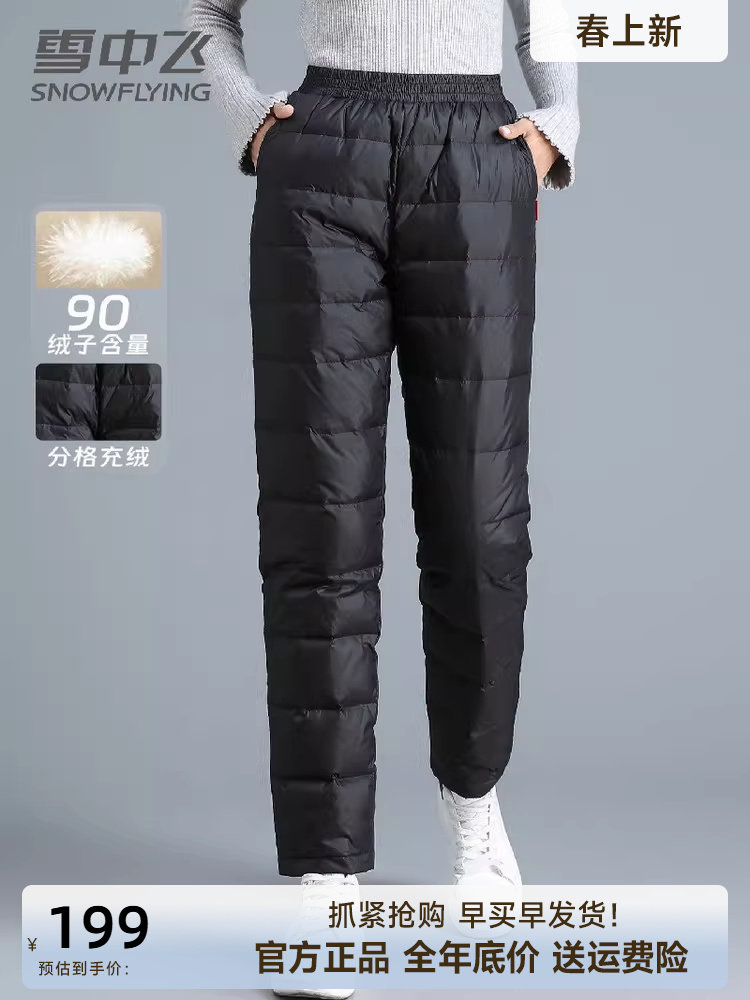 Xuezhongfei Women's down Pants for Wearing Inside, Warm and Thickened for Middle-Aged and Elderly Mothers, Large Size, Slim Fit, Thermal Cotton Pants, Trendy