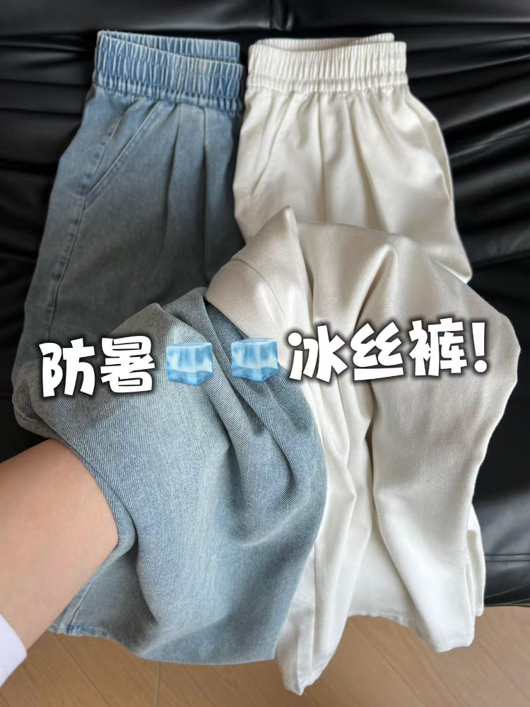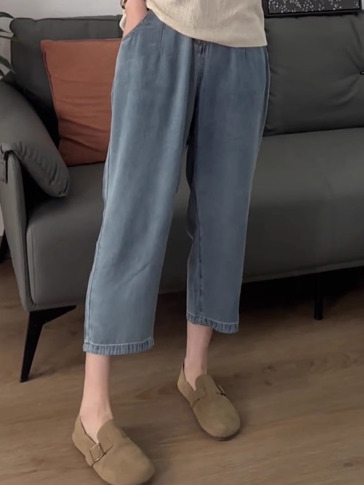 Tencel Jeans for Women, Summer Thin Pants, Plus Size, Slimming, Straight-Leg, Loose, Drapey, Petite, Ice Silk Wide-Leg Pants