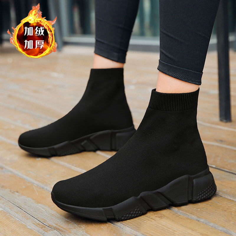 Women's Spring and Autumn High-Top Fly-Knit Boots, Slip-On Soft-Soled Athletic Shoes, Large Size Old Beijing Cloth Shoes for Women