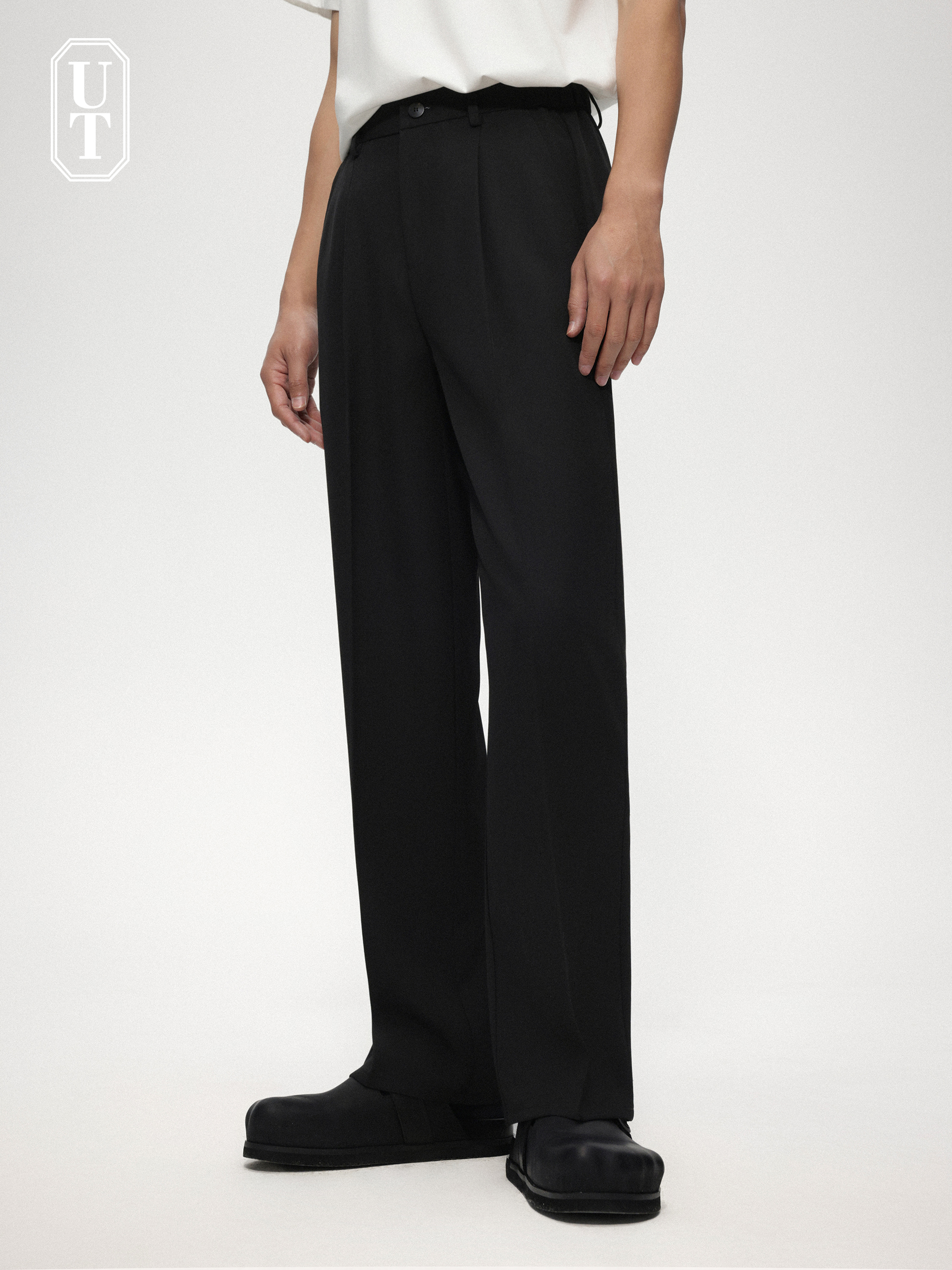 High-End Single-Pleat Drape Casual Pants for Men, Ice Silk Thin Straight-Leg Loose Dress Pants, Breathable and Slightly Stretchy Long Trousers