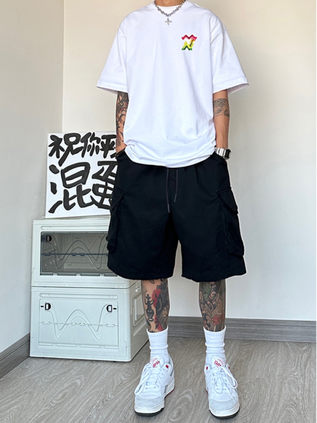 Men's Summer Thin Work Shorts, Knee-Length, American Style, Outdoor, Large Pockets, Loose Fit, Sports Casual, Plus Size, Five-Point Pants