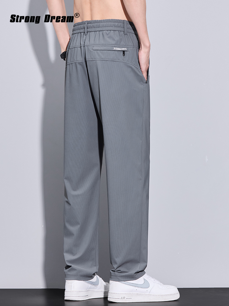 Summer Thin Ice Silk Casual Pants for Men, Loose Straight-Leg 2025 New High-Elastic Quick-Dry Trendy Sports Long Pants