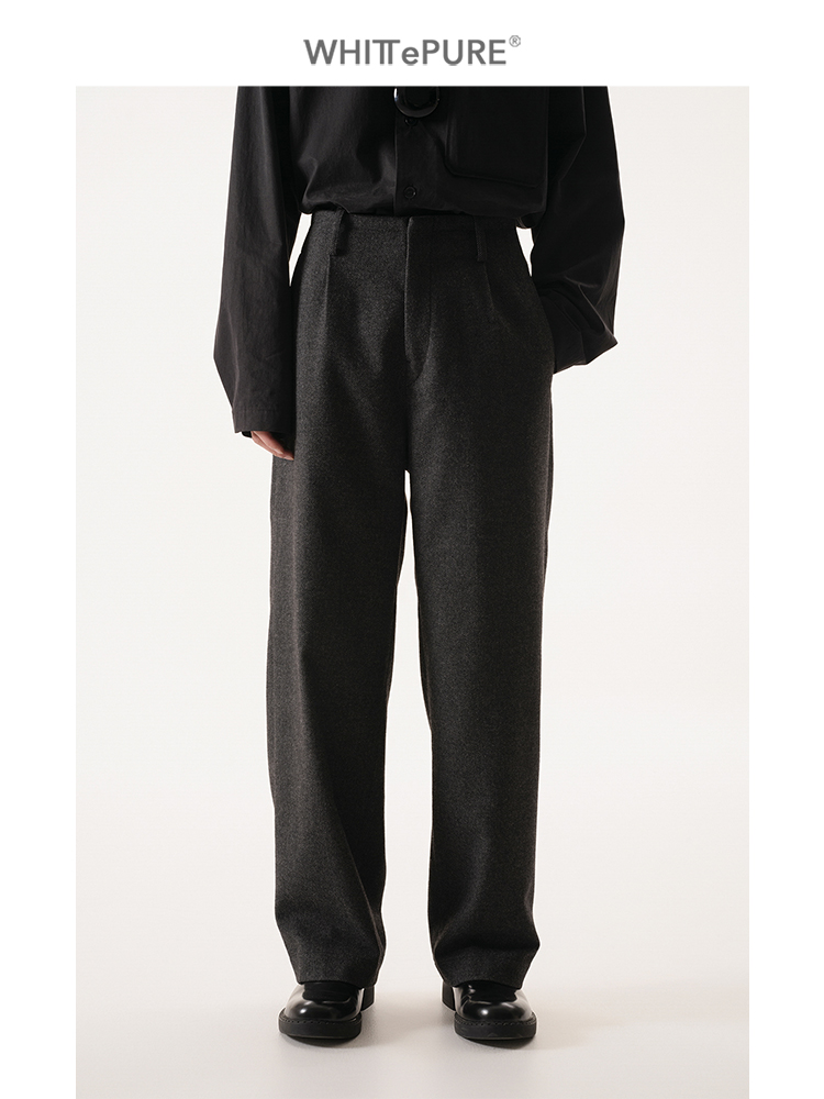 【Whitt Epure】Wp Shirakawa Australian Wool Blend Self-Tie Waist Loose Trousers Casual Dress Pants for Men