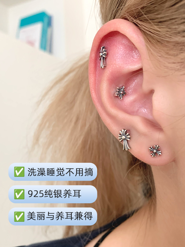 925 Sterling Silver Cross Earrings Ear Cartilage Studs Ear Piercing Cochlear Studs Earrings Jewelry for Men and Women Ringring Store