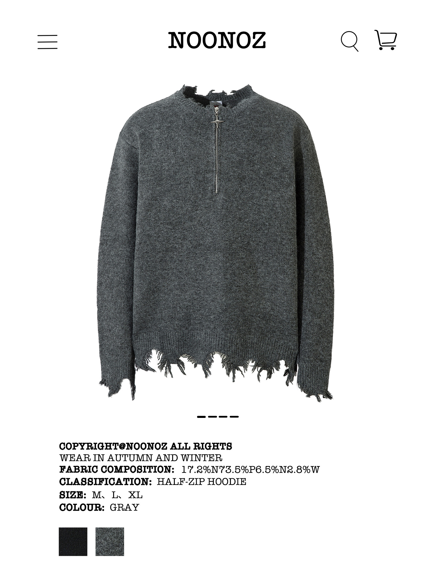 Noonoz American Vibe High Street Half-Zip Ripped Sweater for Men, Autumn and Winter Hip-Hop Trendy Brand Couple Loose Knitwear