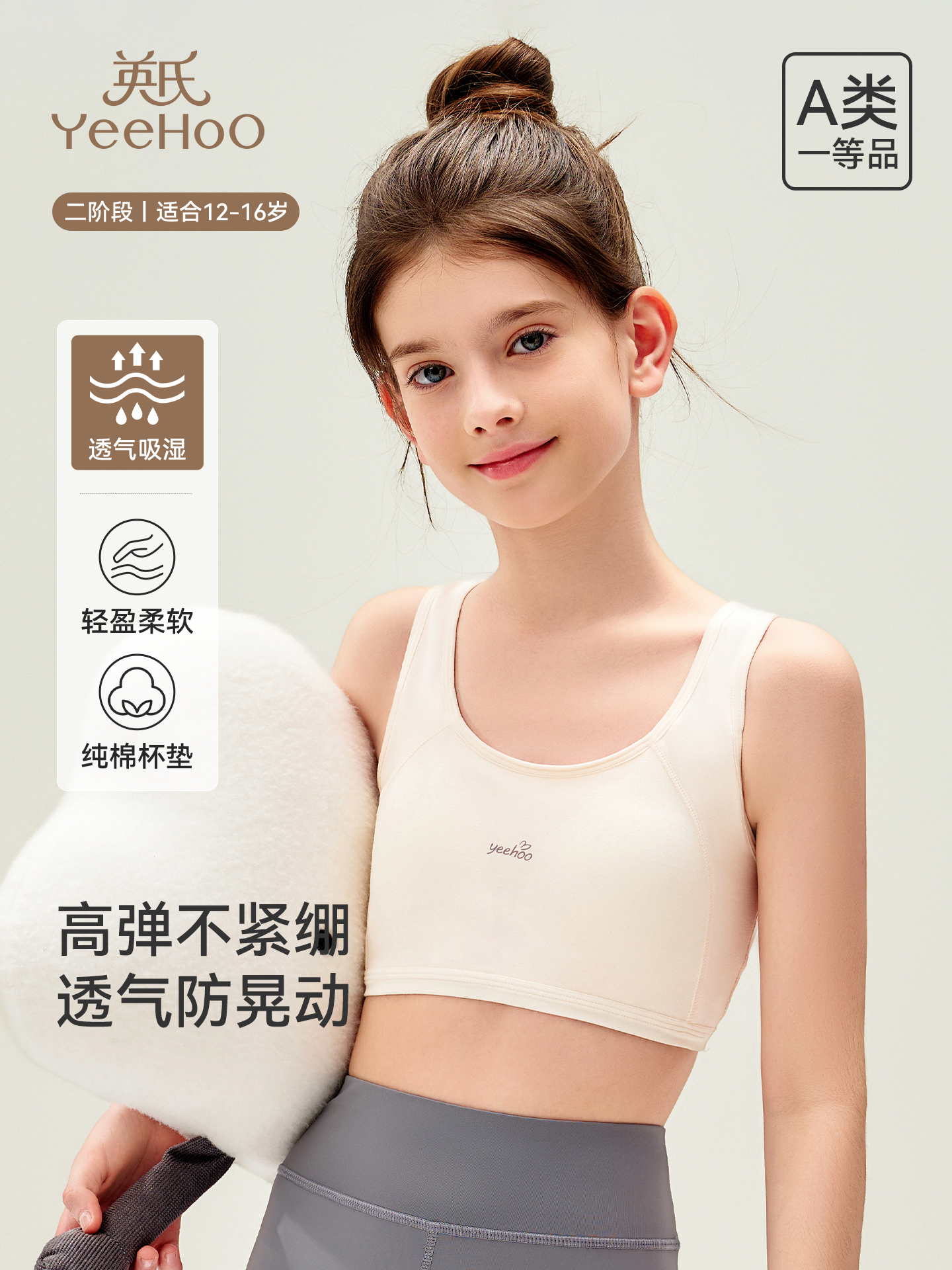 Yingshi Pure Cotton Girls' Underwear, Little Girls' Development Period Bra, Girls' Puberty High-Elastic Sports Vest, Second Stage