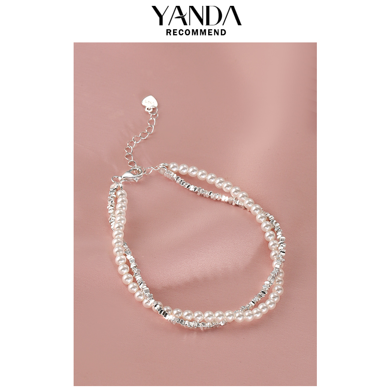 Yandai 925 Silver Crushed Silver Pearl Double-Layer Bracelet for Women, Unique Design, Stylish and Versatile Jewelry