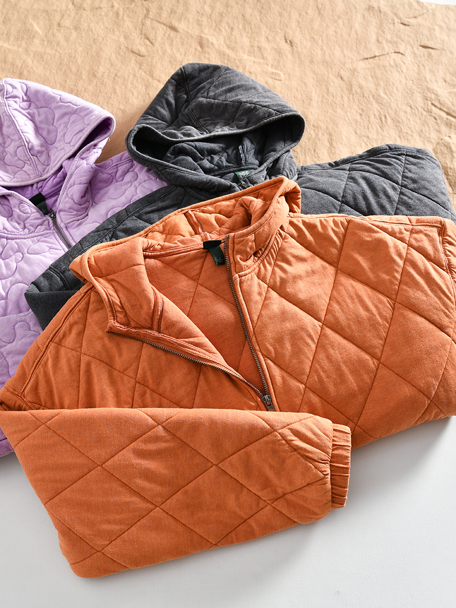 Export to Europe and America! Quilted and Padded! Autumn and Winter Unisex Couple Style Solid Color Versatile Loose Hooded Cotton Jacket