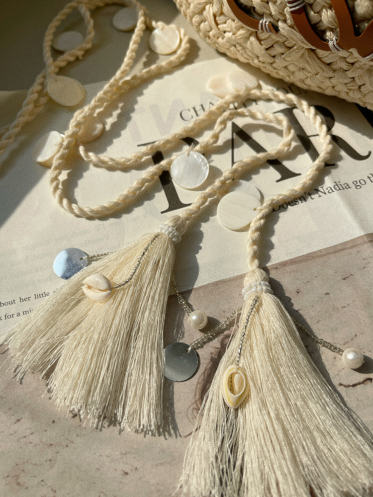 Aconiconi|Wan Tang Xing Yue Braided Tassel Belt Shell Sequin Pearl Bohemian Waist Chain Waist Rope