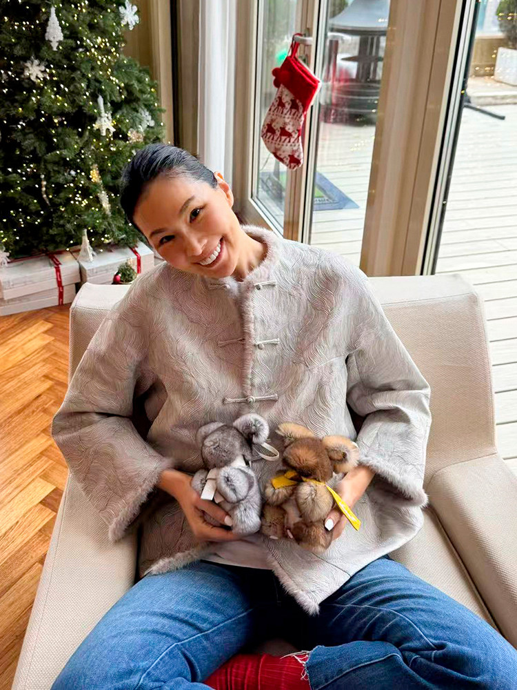 Amandax "Oriental Artistic Atmosphere" Series Cloud Wave Brocade with Mink Trim Chinese Style Jacket/New Year Dress