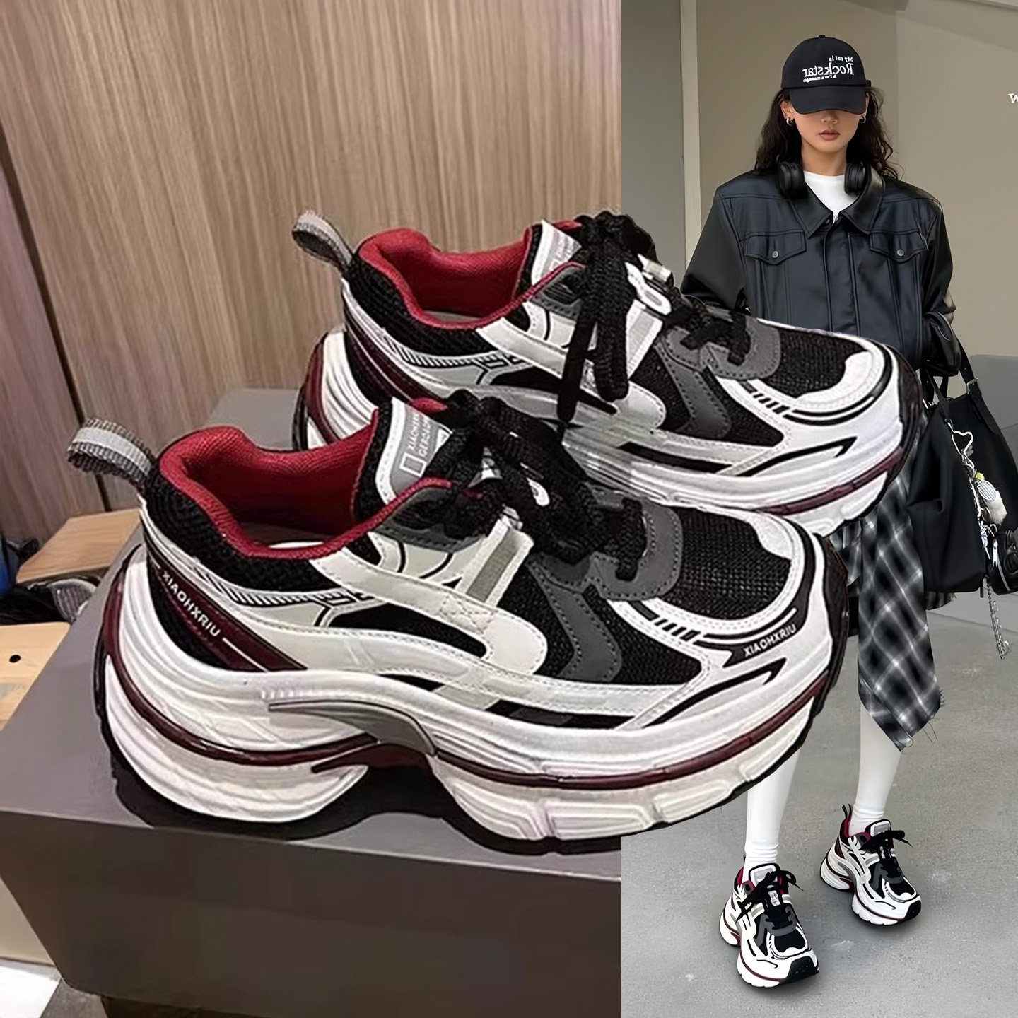 Hong Kong Thick-Soled Height-Increasing Dad Shoes for Women 2026 Spring and Autumn Shock-Absorbing Non-Slip Distressed Mesh Breathable Casual Shoes Sneakers