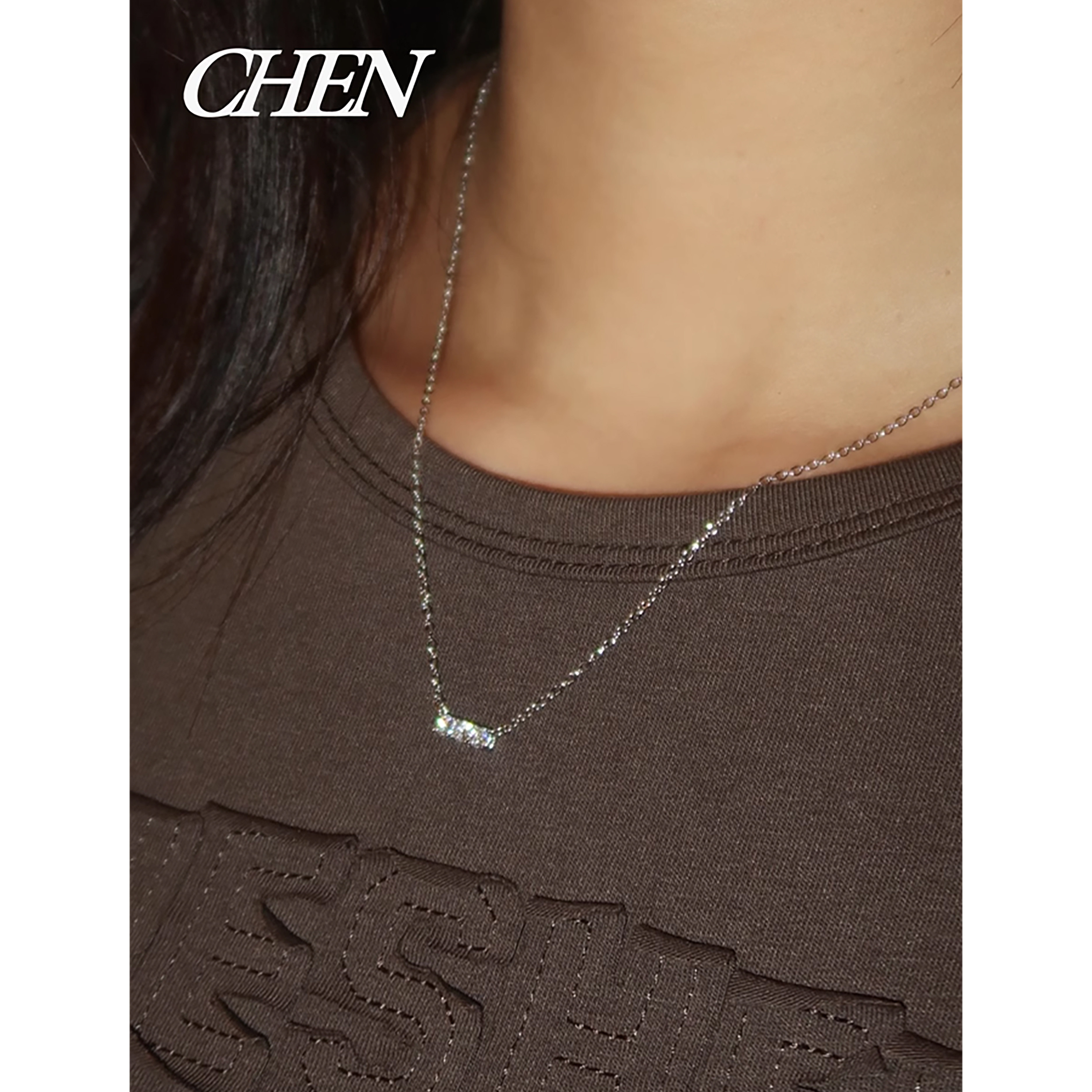 Chenyao/S925 Silver Jewelry Simple Moissanite Necklace for Women Fashionable Pendant Pure Silver Clavicle Chain High-End Design