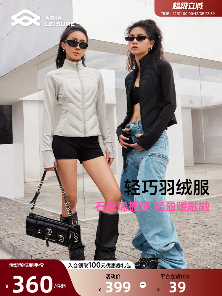 Aria Leisure Lightweight Sports down Jacket for Women, Autumn and Winter Short Running Jacket, Warm down Jacket with Long Sleeves