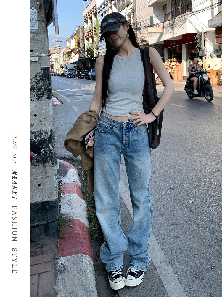 American Retro Black Straight-Leg Jeans for Women, Winter Fleece-Lined, Plus Size, Pear-Shaped Body, High-Waisted, Hip-Covering Wide-Leg Pants