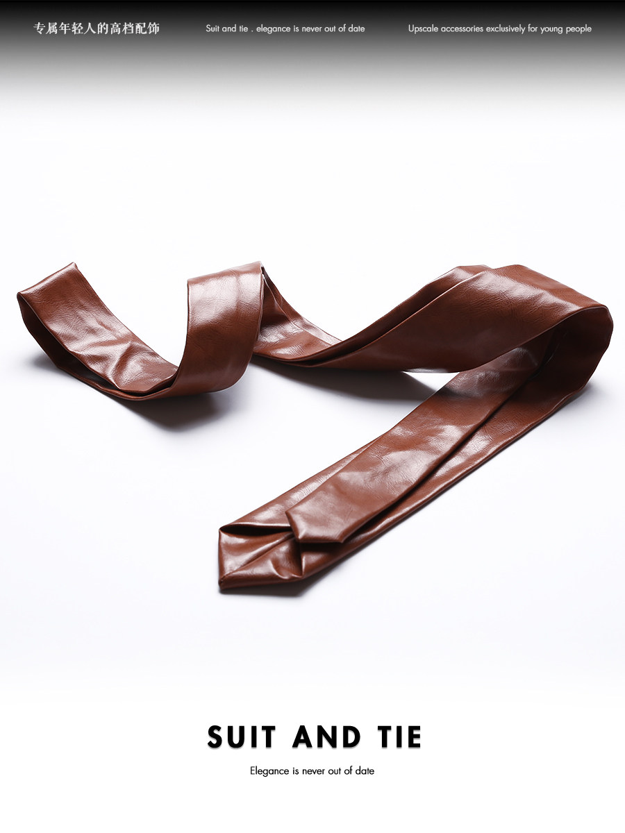 Suitandtie High-End Men's Leather Tie Business Wedding Groom Unisex Casual Retro College Style Narrow Version