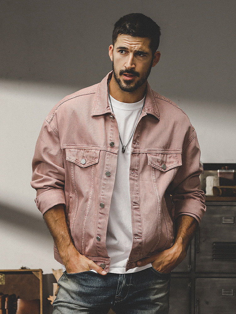 American Retro Dopamine Pink Denim Jacket for Men, Spring and Autumn Trendy Asute Spring Casual Workwear Jacket for Men