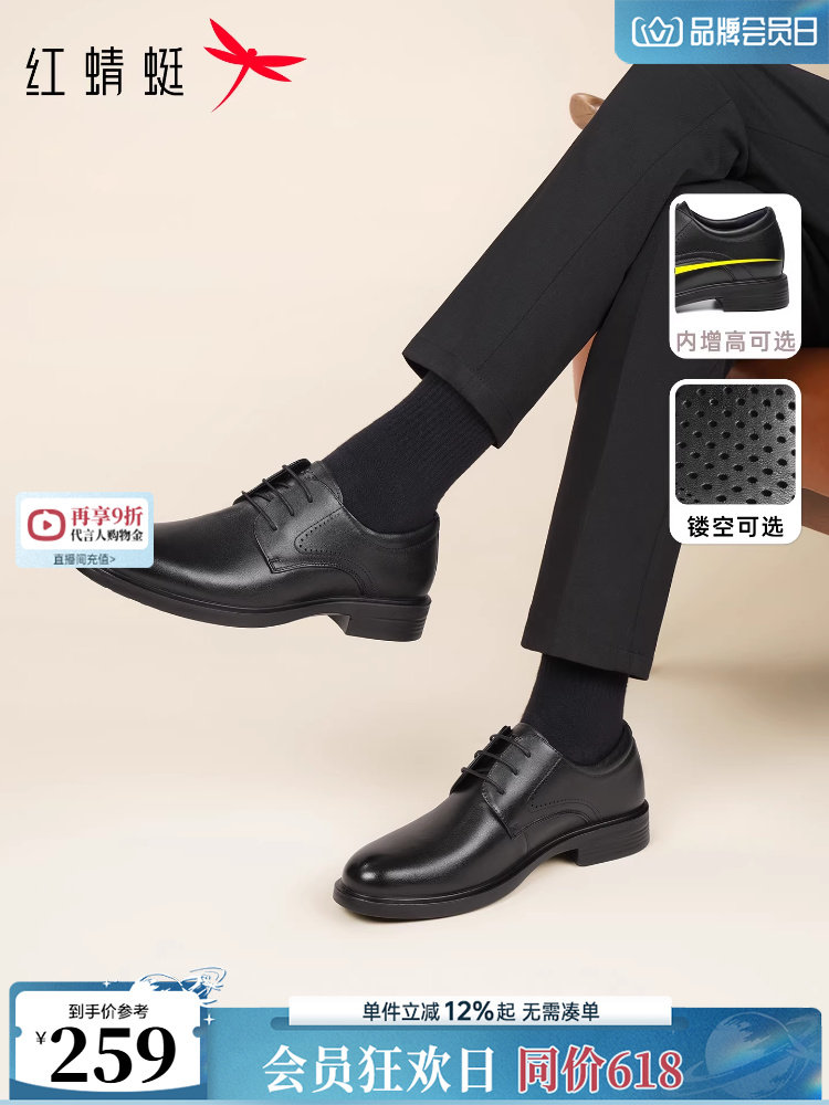 Red Dragonfly Men's Leather Shoes Spring Business Formal Genuine Leather Large Size Men's Shoes with Internal Height Increase for Groom Wedding Suit Shoes