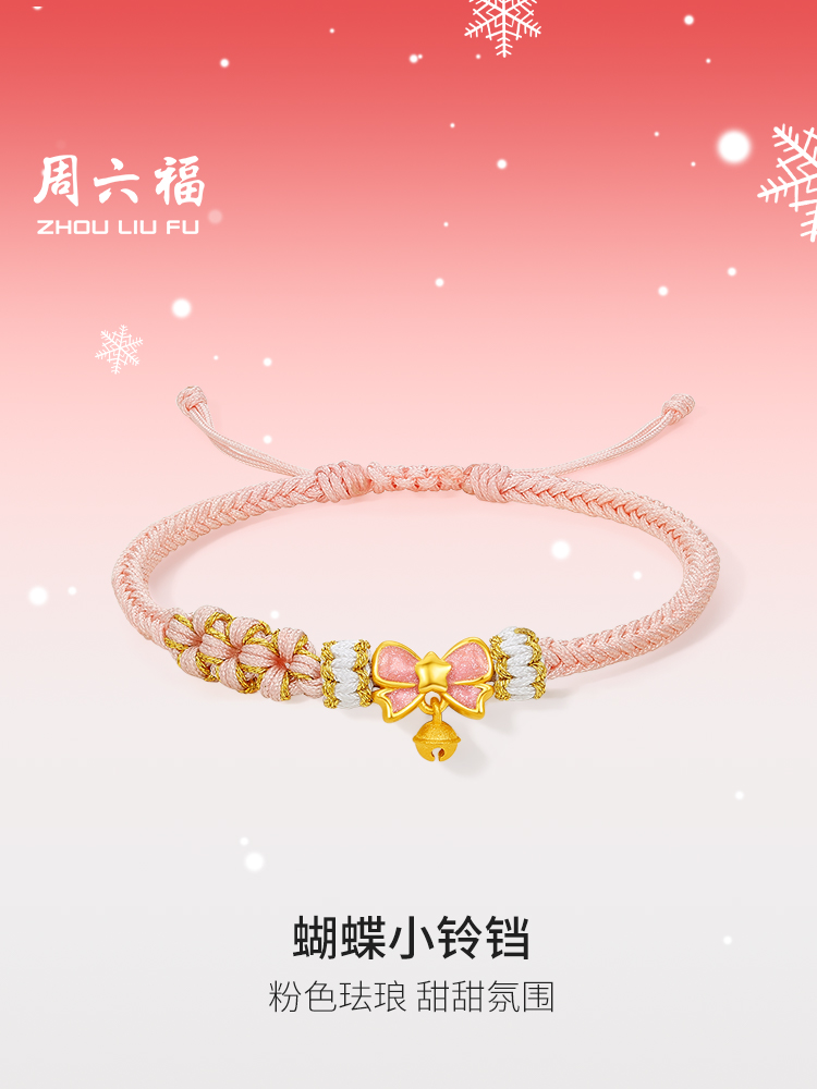 Saturday Fortune Gold Bracelet for Women 3D Hard Gold Pricing Butterfly Small Bell Enamel Pink Bracelet Bow Christmas Gift