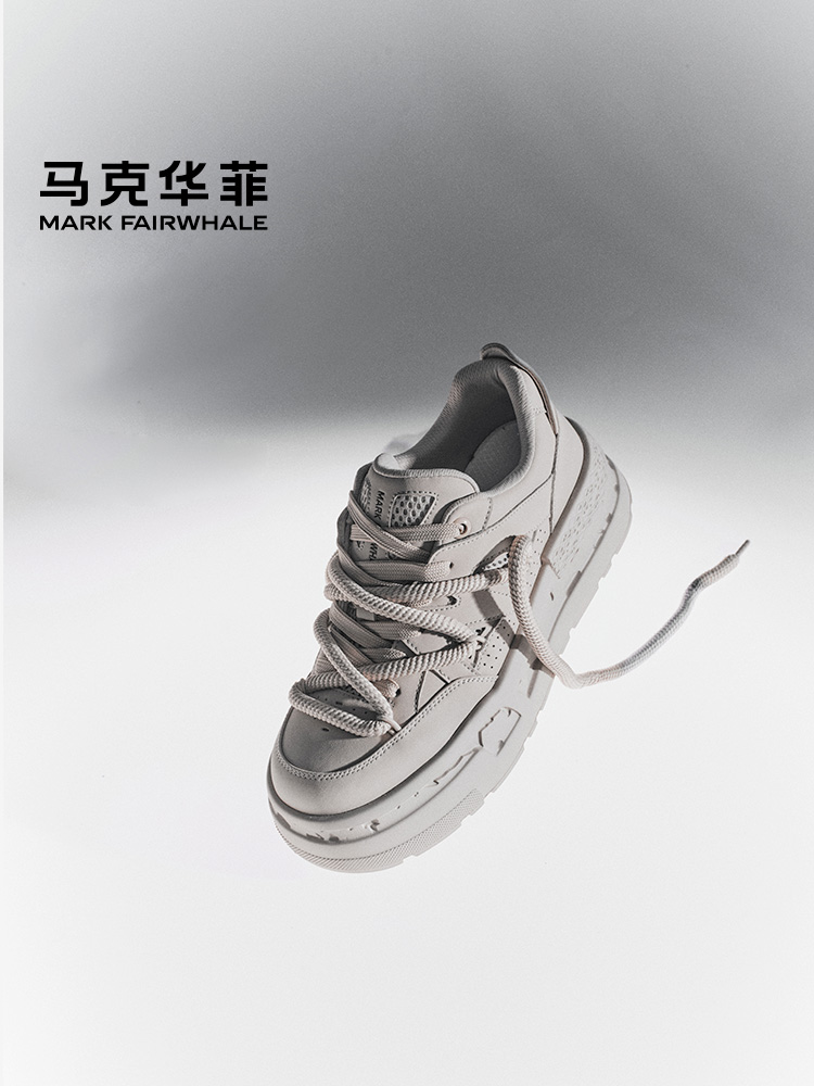 Mark Hua Fei Trendy Sneakers for Men, 2025 Spring Comfortable Student White Shoes, Chinese Style Genuine Leather Casual Sports Shoes