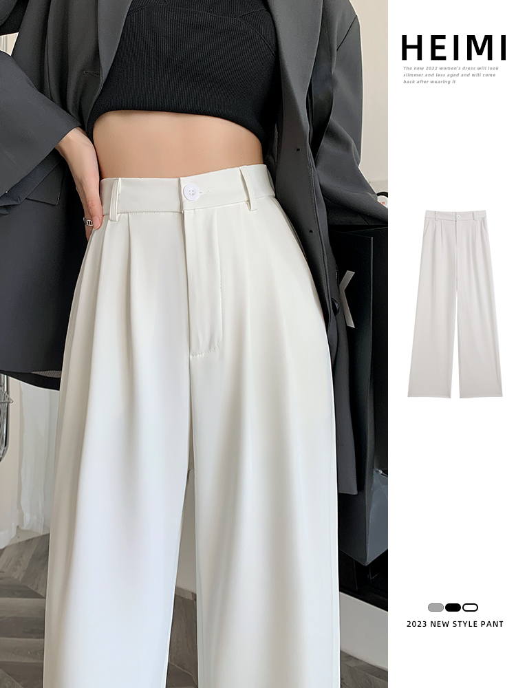White Slim-Fit Pants for Women, Spring and Autumn, Floor-Length, High-End Drape, Wide-Leg Pants, Petite, Loose Straight-Leg Suit Pants, Summer Trend