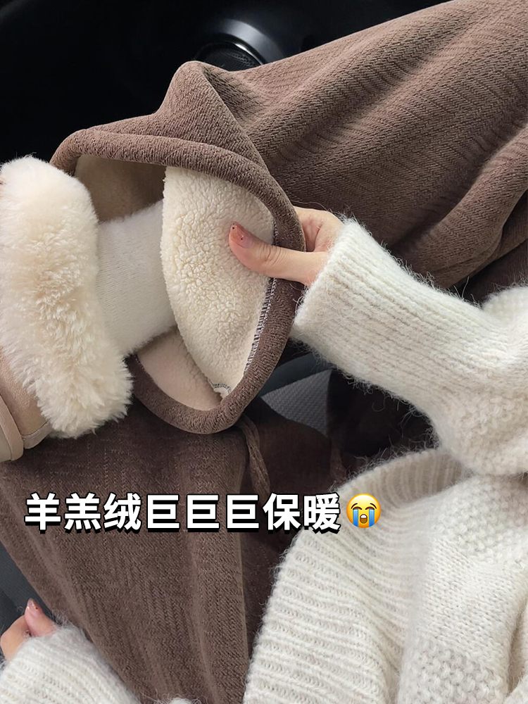 Lamb Wool Wide-Leg Pants for Women, Autumn and Winter 2025 New High-Waisted Drapey Knitted Straight-Leg Fleece-Lined Coffee-Colored Chenille Pants