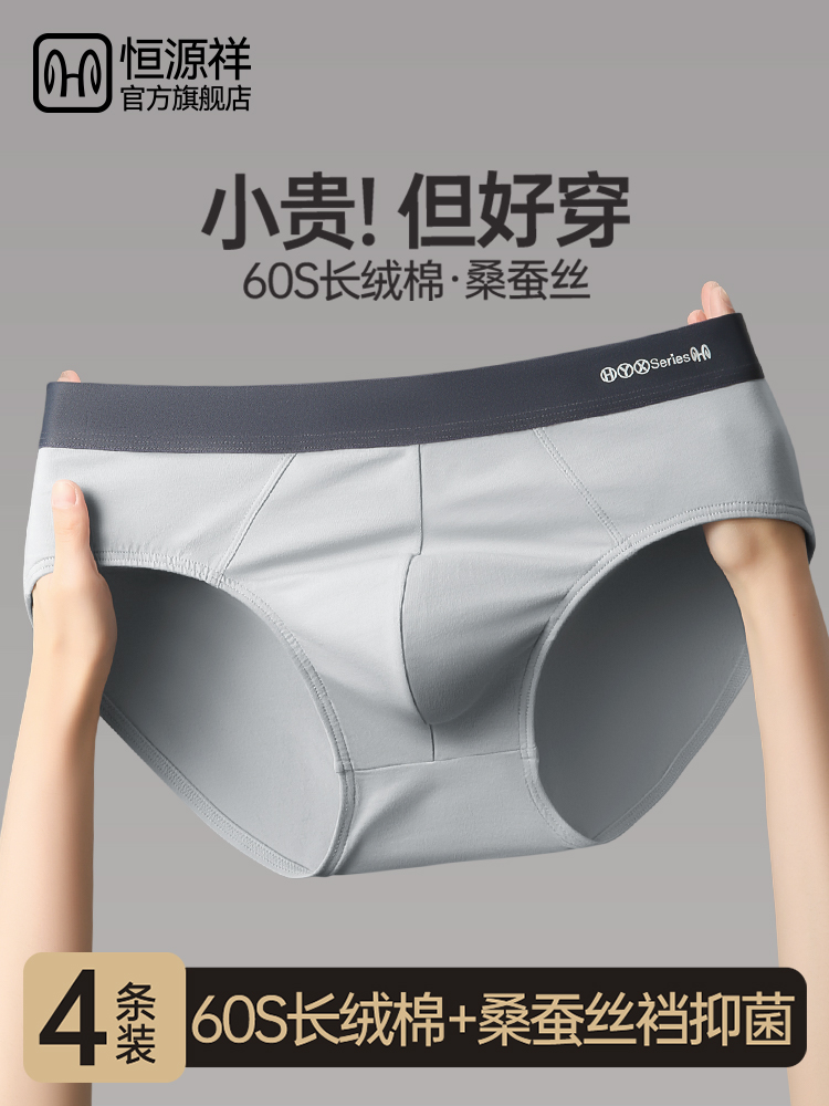 Hengyuanxiang Men's Underwear Pure Cotton Shorts Men's Brand-Name Authentic High-End Briefs Breathable New Style Triangle Briefs