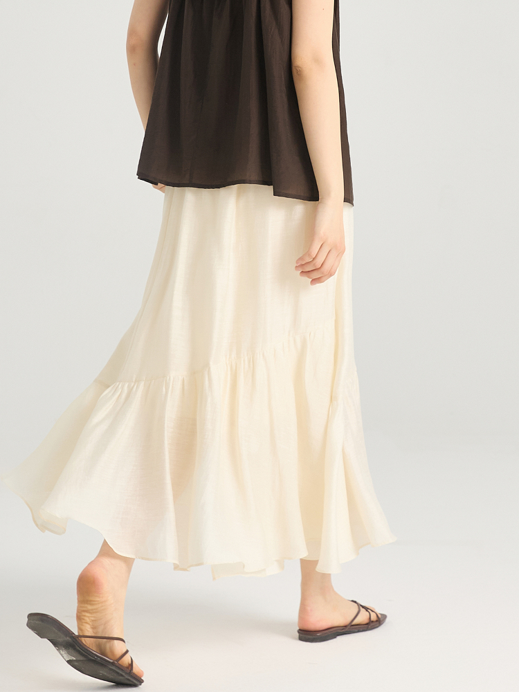 Prefree Floating Notes/ Beautifully Tailored Pearl-Colored Acid-Gauze-Like Elastic Waist Petal Skirt