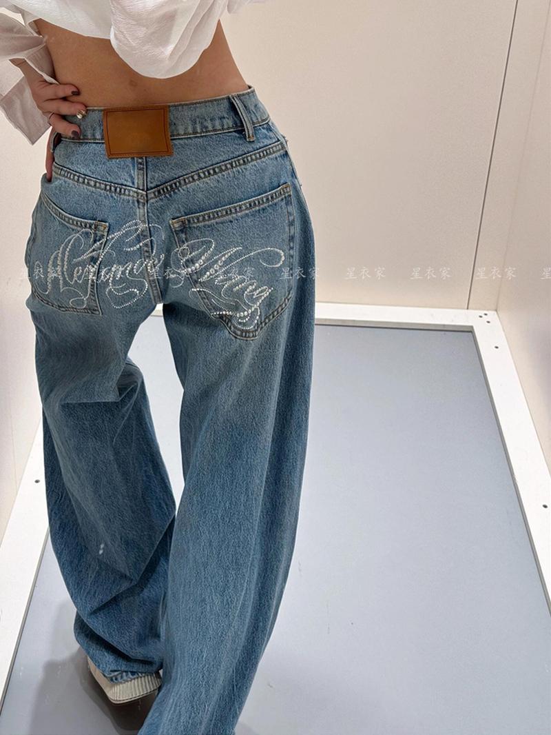 American Hot Girl Heavy Industry Letter Hot Diamond Jeans Women's 2025 Summer Retro Design Niche Floor-Mopping Wide Leg Pants