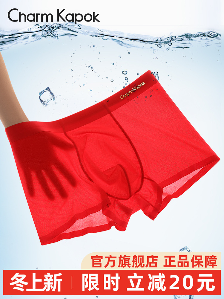 Charmkapok Men's Underwear Red for the Year of the Snake, Wedding Ice Silk Seamless Summer Thin Boxer Shorts