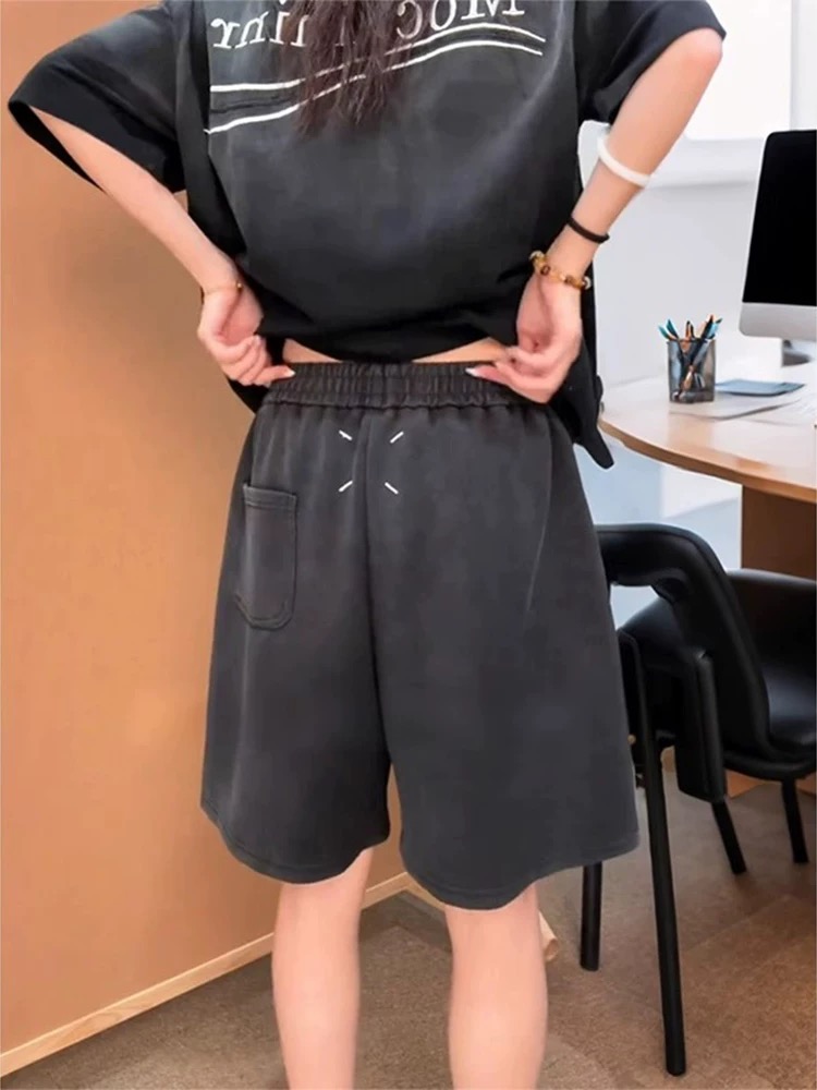 360g Washed Black Heavy-Duty Shorts for Men, Summer Loose Trendy Casual Five-Point Pants, Versatile Sports Mid-Length Pants