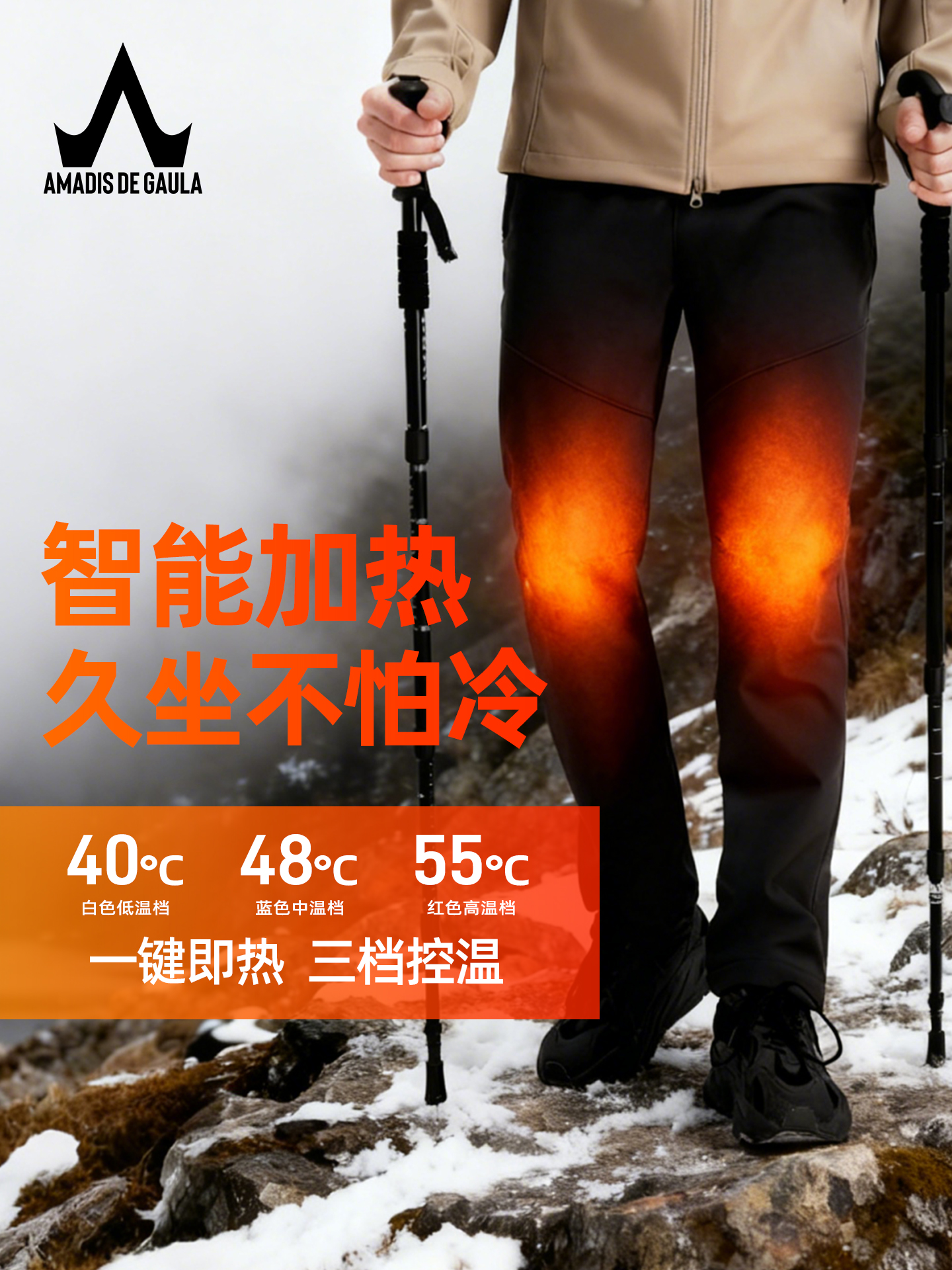 Amadeus Heated Softshell Pants for Men, Autumn and Winter, Thermal Fleece-Lined, Warm, Fluorine-Free, Waterproof, Stain-Resistant, Fishing Pants