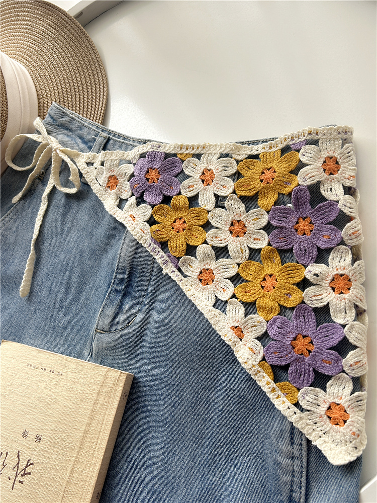 Floral Hollow-Out Dopamine Triangle Scarf Headscarf Knitted Cotton Tassel Hip Wrap Layered One-Piece Waistband Decorative Hip Cover