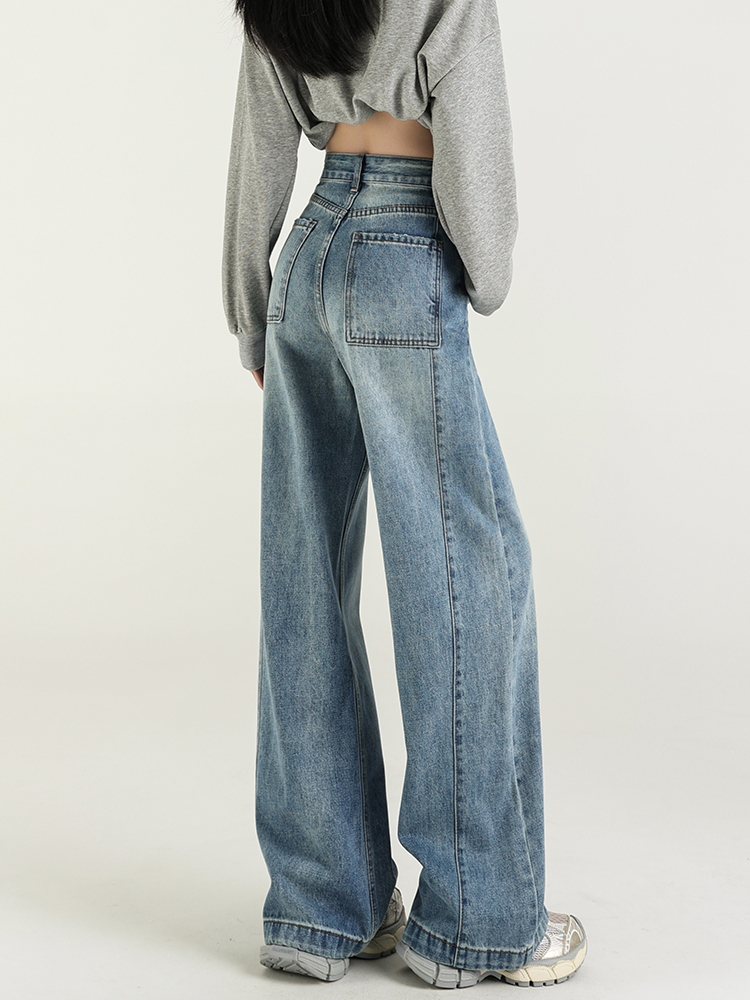 American-Style Vintage Blue Wide-Leg Jeans for Women, New Autumn and Winter Loose-Fitting, Drapey, Light-Colored Straight-Leg Floor-Length Pants