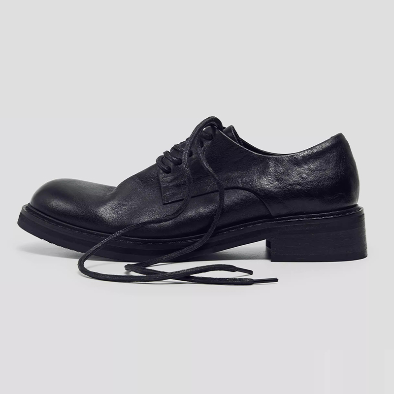 Minimalist Washed Leather Derby Shoes for Men and Women, British Style Round Toe Lace-Up Thick-Soled Black Commuting Shoes