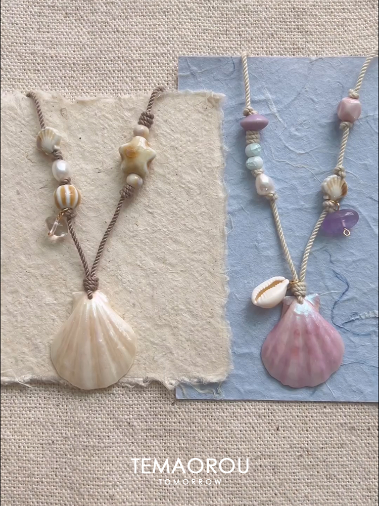 LAOSHU ! High-End Niche Design Long Braided Rope Large Shell Beaded Necklace for Women, New Travel Accessory Cross Chain