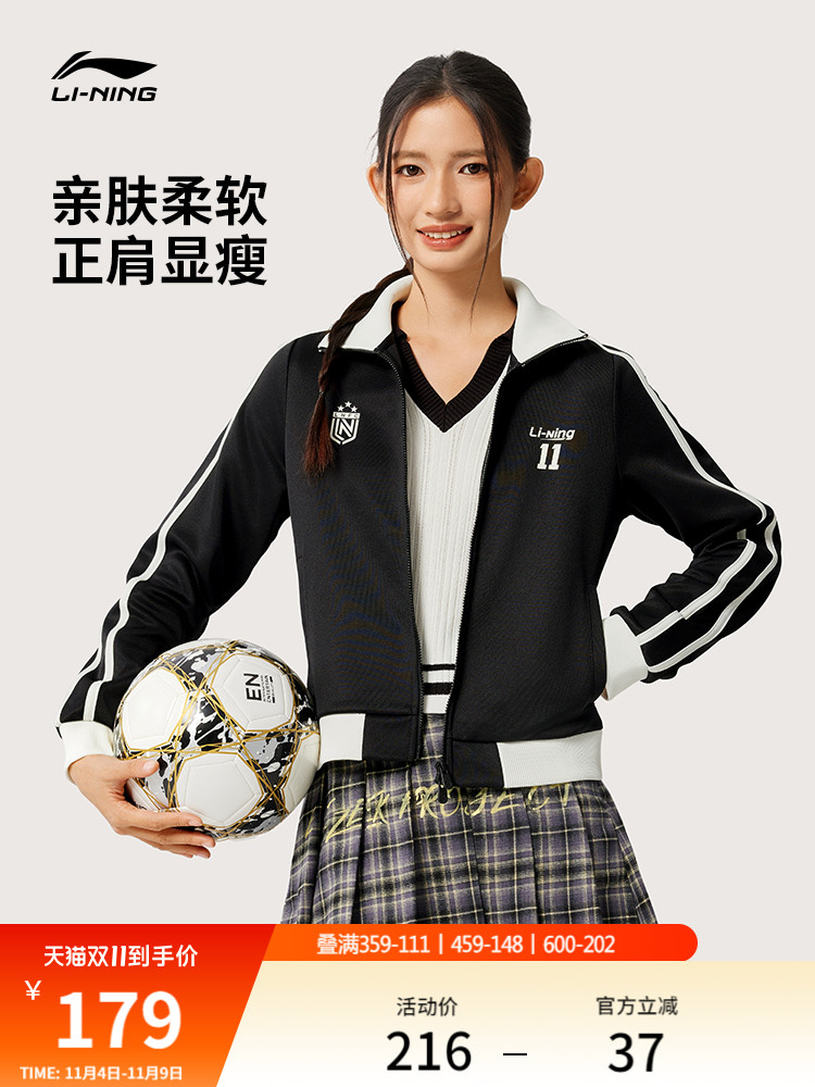 Li-Ning Short Jacket for Women 2025 New Autumn and Winter Women's Regular Shoulder Sweatshirt American Style Top Stand Collar Sports Jacket