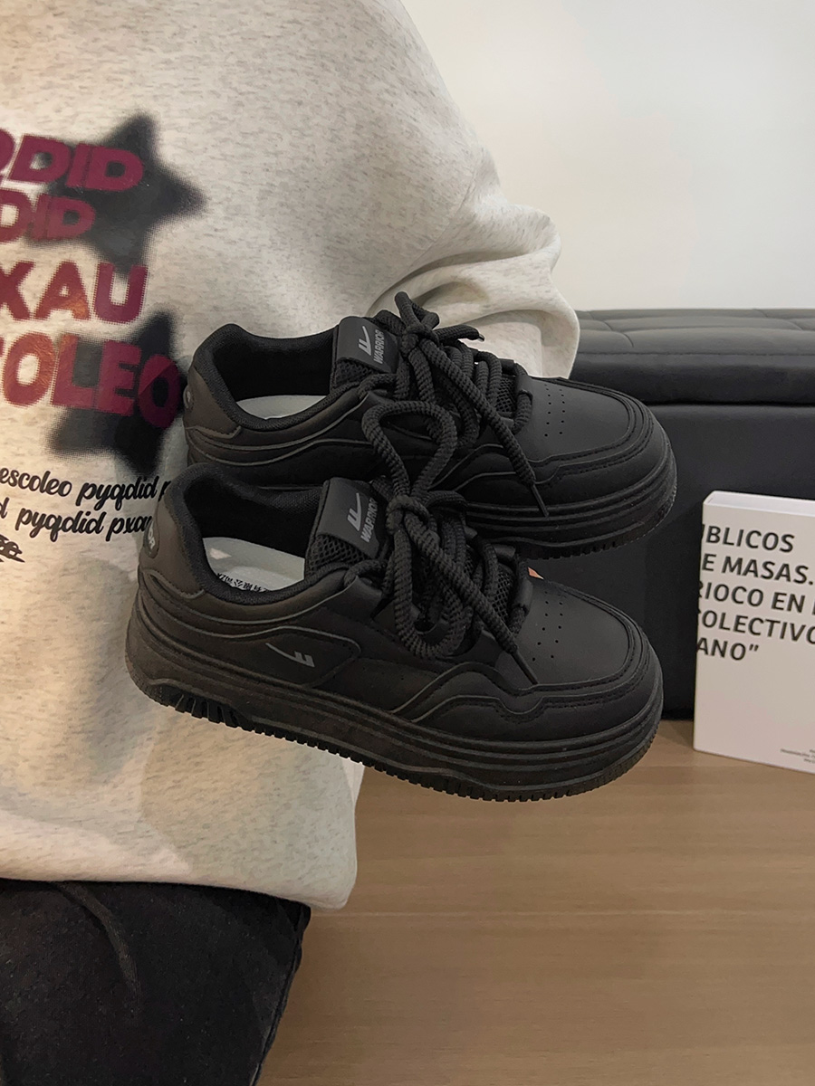 Pull-Back Black Sneakers, Niche High-End Thick-Soled Sneakers for Women, 2025 New Autumn Black Casual Shoes for Women