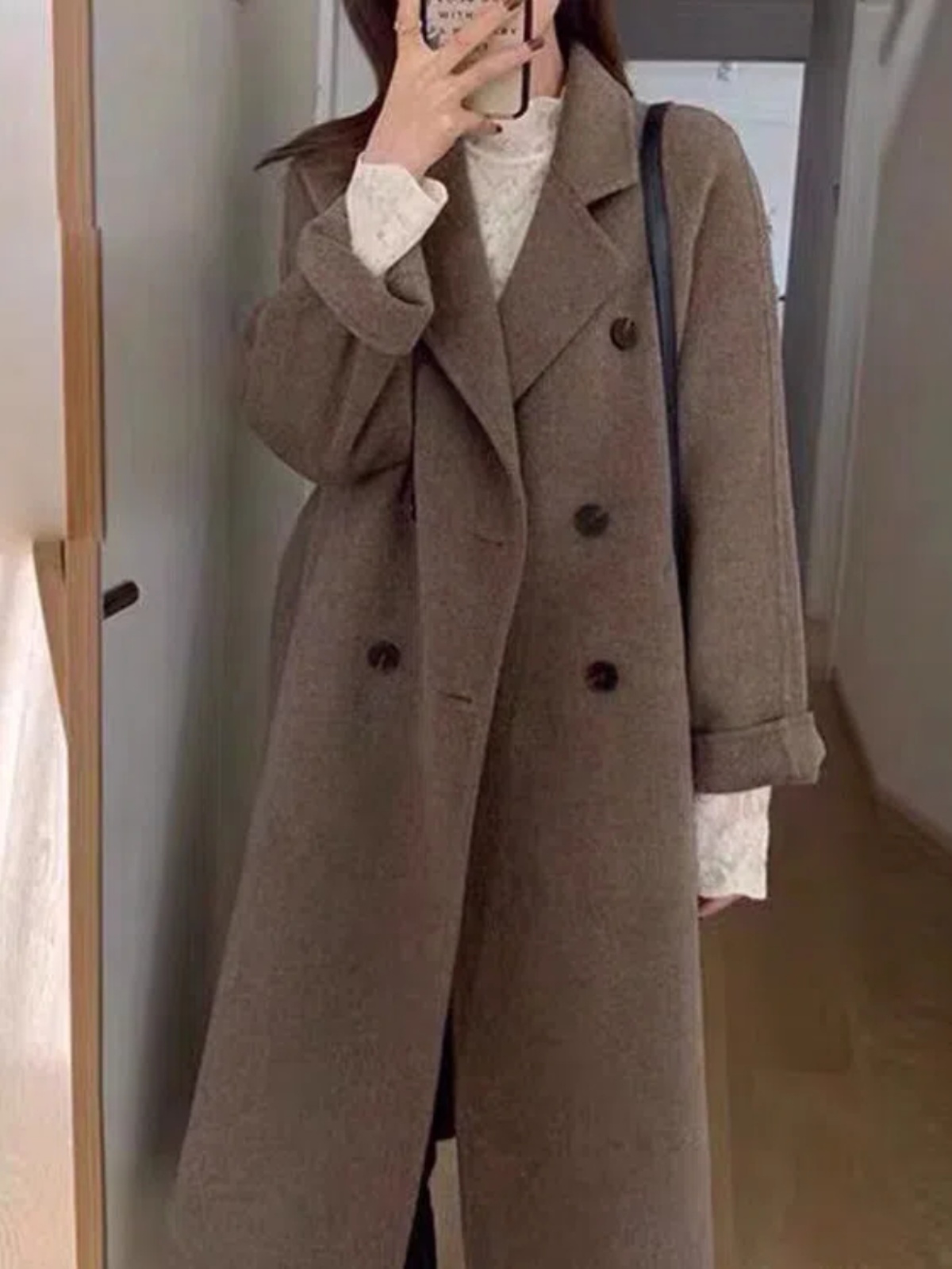 2024 Autumn and Winter New Classic Double-Breasted Woolen Coat Mid-Length Woolen Coat for Women