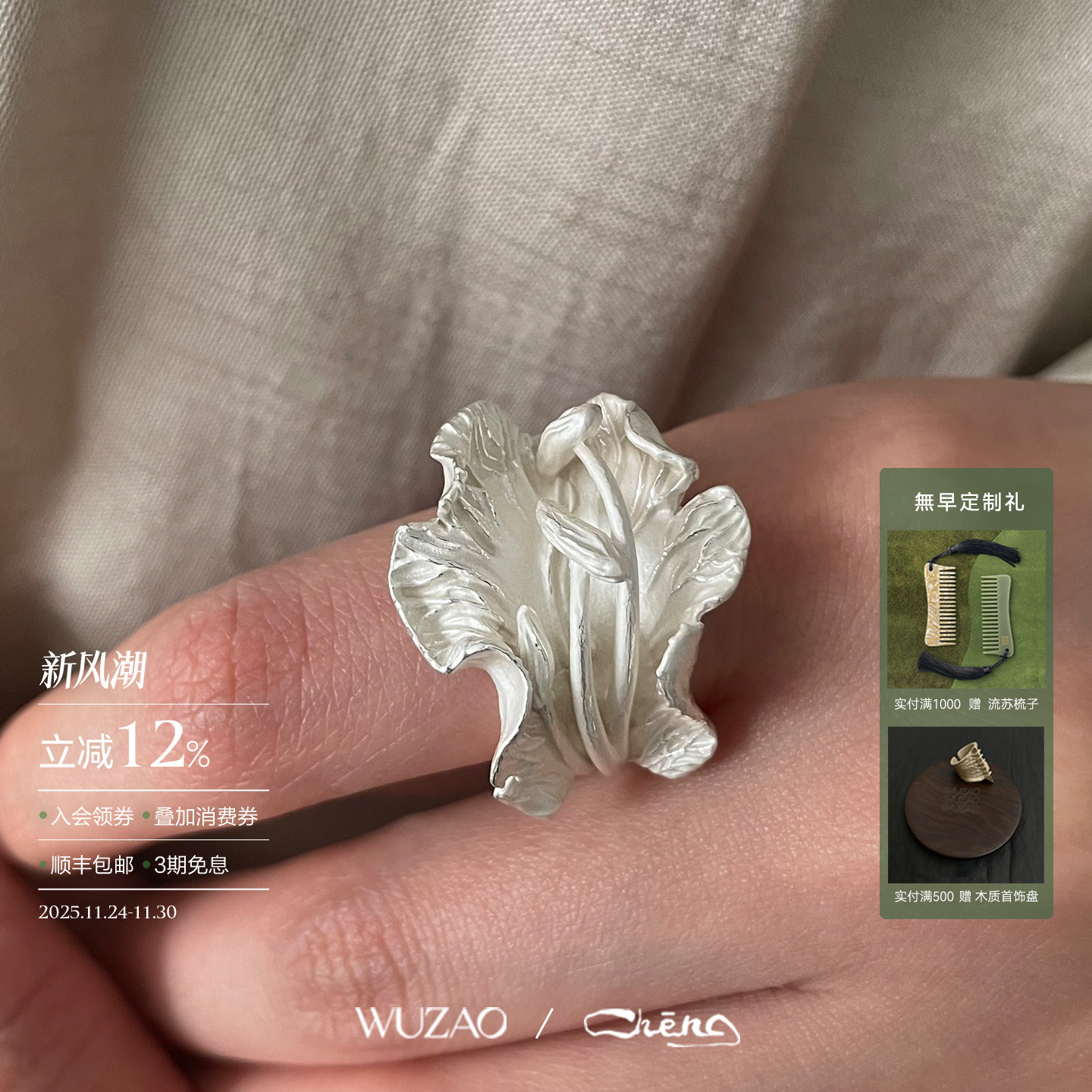 Cheng Langbian Petal Ring, Pure Silver, Original Niche Design, Petal-Shaped, Single Leaf, Unique Open Ring