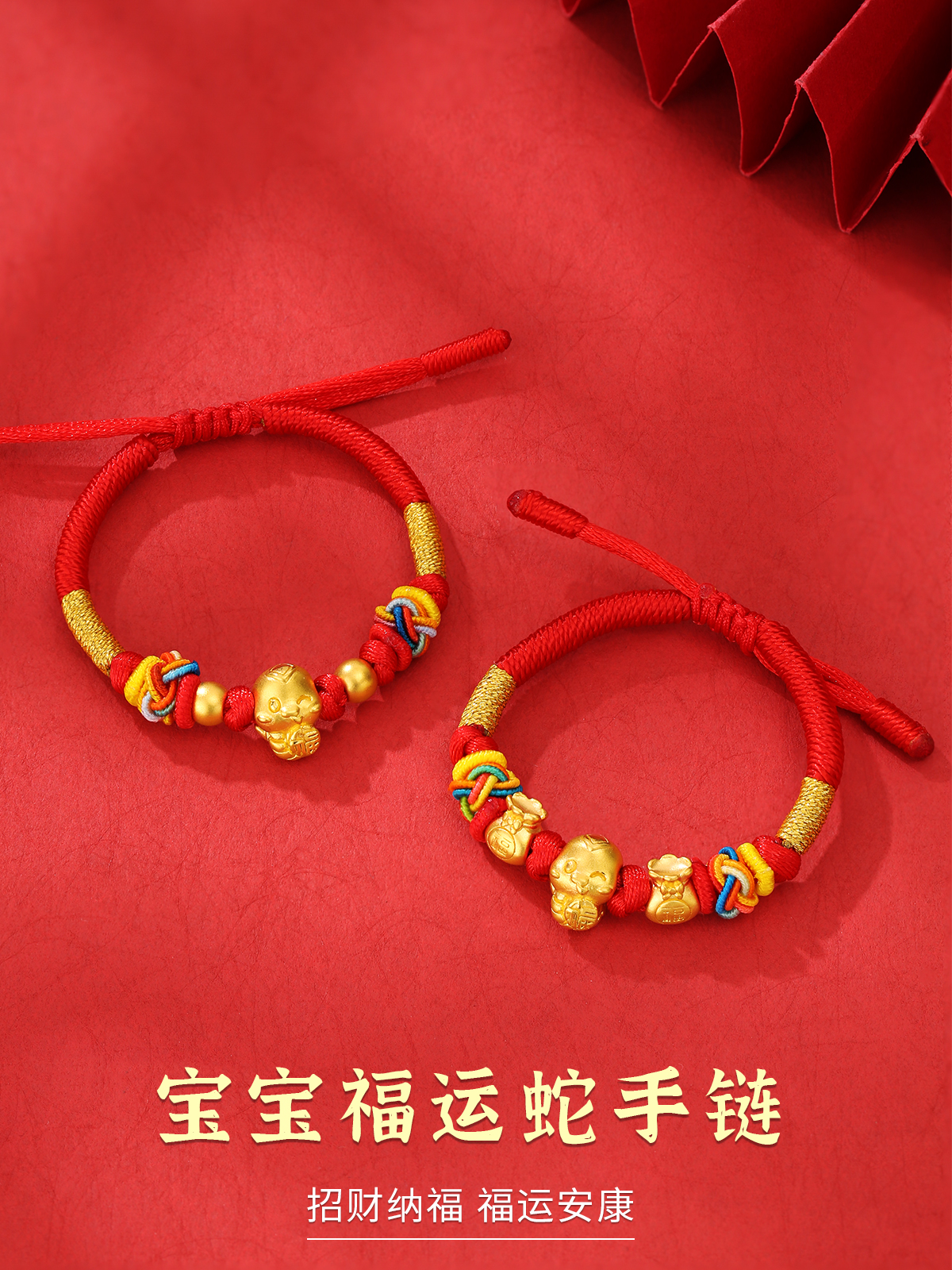 Snake Baby Gold Bracelet Year of the Snake Pure Gold Infant Small Gold Snake Zodiac Transfer Bead Full Moon Pure Gold Birth Year Bracelet