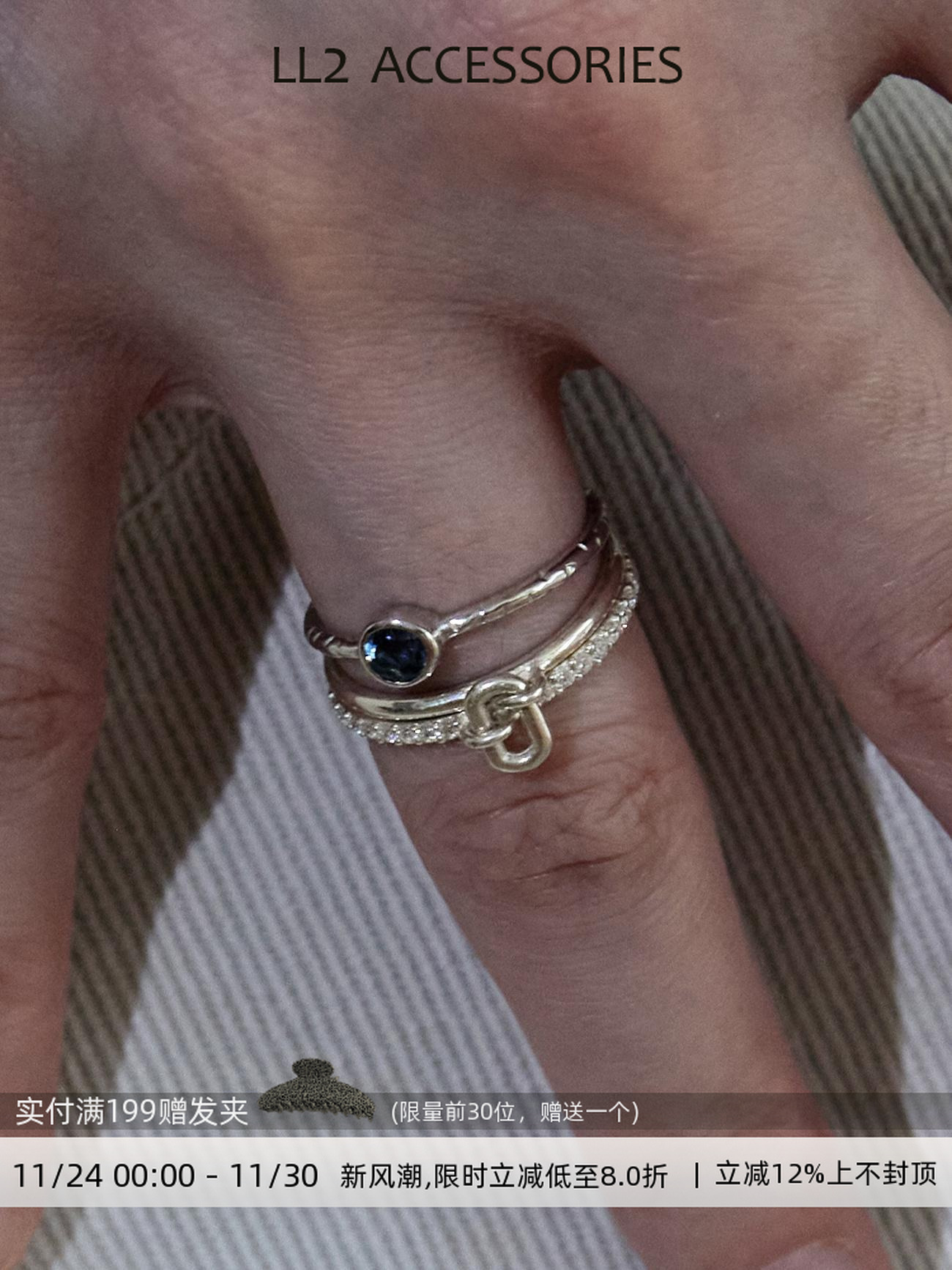 Ll2 Accessories 925 Silver Niche Design Vintage Round Diamond Ring Full Diamond Plain Band Double-Layer Ring