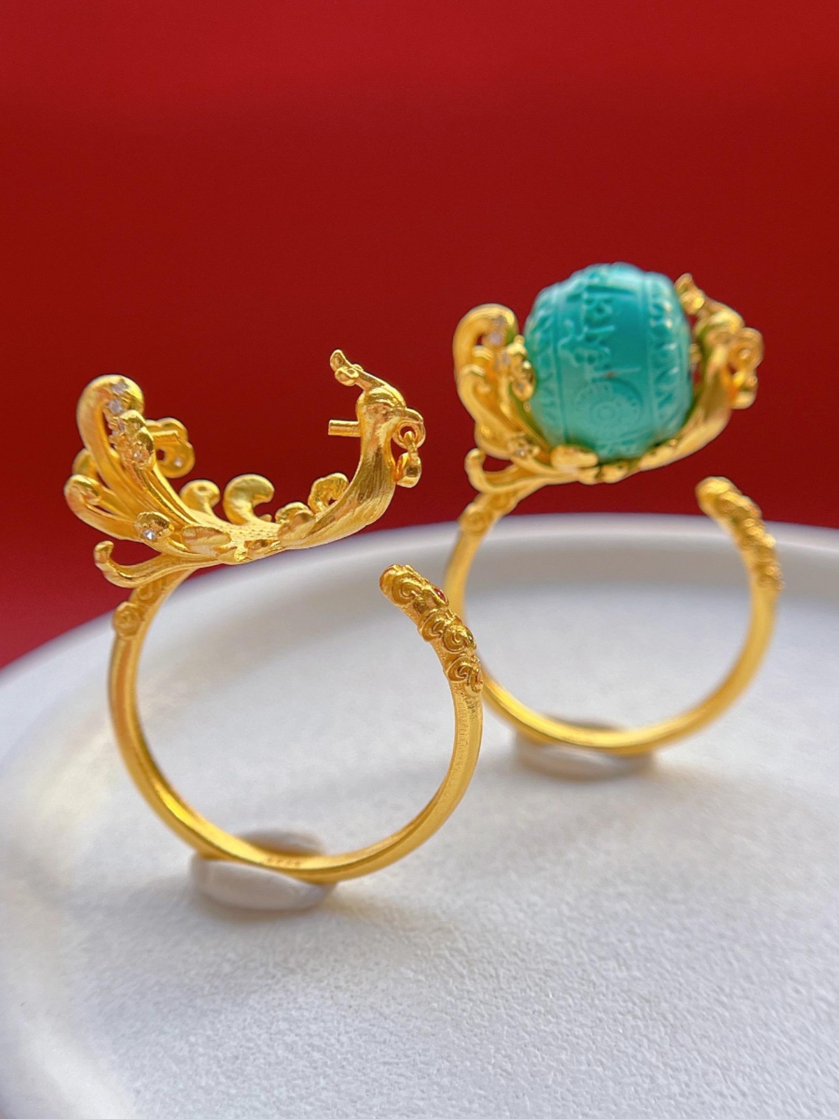 S925 Ancient Silver Gold-Plated Accessories with Engraved Phoenix Ring Setting for Women, Suitable for Pairing with Pearls, Turquoise, Southern Red Agate, and Various Other Beads